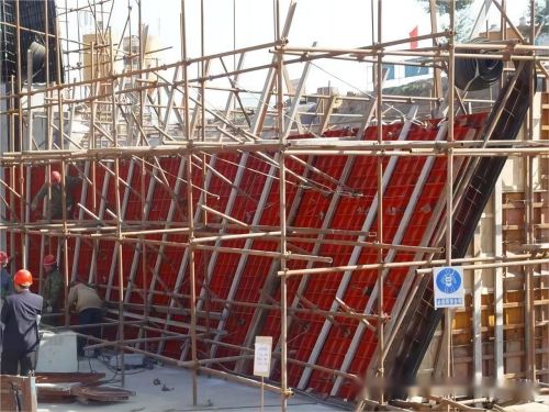 3、工程規(guī)定: 安裝中:支架搭建管控立柱垂直度和水平桿平行度,整架垂直度誤差不能超出h/500(h為立柱高度),但高不超出20mm;支架頂托依次頂緊,實(shí)現(xiàn)全部立柱平均受力。